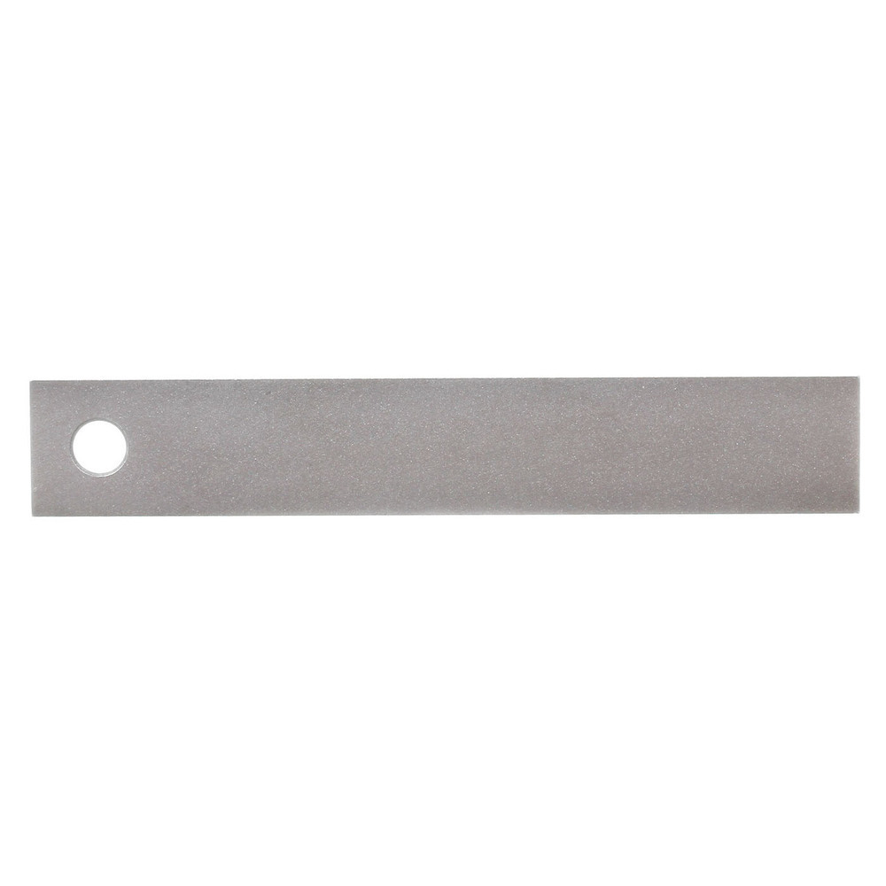 3" long x 1/2" wide x 1/16" thick. 3/16" hole 1/4" from end.