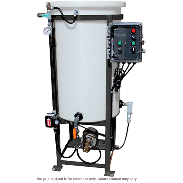 The control panel is NEMA 4 and include main power switch, pump H/O/A switch and low level indicating LED light, 15A fuse and locking cover. Optional features include duplex system, low level alarm, low level dry contact, TEFC pump, 1/2hp pump and high temp manifold.