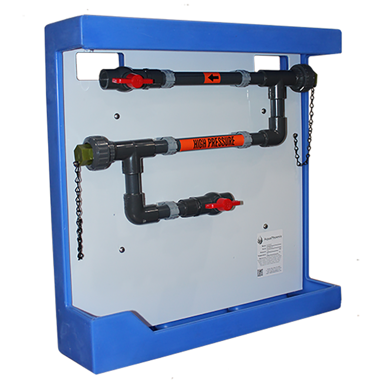 Our pre-assembled corrosion coupon racks are built on a solid and durable molded Poly back panel with 3/4” schedule 80 PVC plumbing. The union style holders eliminate the need for tools and avoid the risk of cross-threading. These racks allow for a simple and immediate install, saving you time and providing a clean and professional look.