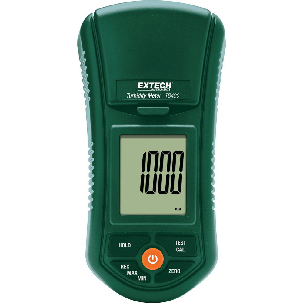 The Extech TB400 Portable Turbidity Meter measures turbidity up to 1000 NTU, and can test on a multitude of things, including municipal water, food, beverage water, and other aqueous solutions. The device is portable, allowing the user to take it anywhere and get measurements on site rather than taking samples back to a laboratory. 0.00-50.00, 50-1000 NTU Large big-digit LCD and splash-proof front panel, Portable design allows you to take measurement on-site instead of bringing solution back to the lab. Measures up to 1000 NTU (Nephelometric Turbidity Unit) with 0.01 NTU resolution. Microprocessor-based circuitry assures high accuracy and repeatable readings, Requires only a 10mL sample size, 2-point calibration, Auto Power Off, Battery operated for field and on-site testin, Data Hold and Min/Max record/recall, Complete with 0 and 100 NTU standard solution test bottles, cleaning solution, test bottles with covers, cleaning cloth, six AAA batteries, and hard carrying case.