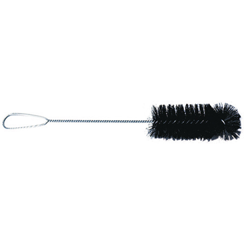 Brush portion is 13 cm (5") length, 5 cm (2") diameter. Total length: 33 cm (13"). Heavily filled with black bristles on galvanized wire. Radial tufted end. Cylinder brush size 2.