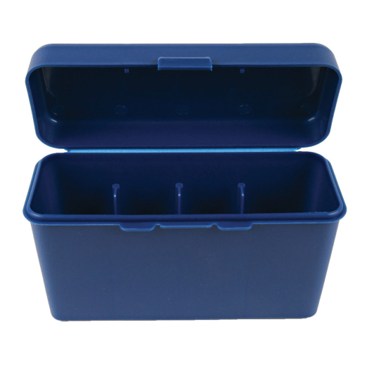 Durable molded plastic; test kit box with 4 compartments. Measures 7.75" x 3" x 4.5"