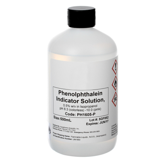 500 mL 0.5% w/v in Isopropanol pH 8.3 (colorless) -10.0 (pink) Ref#: 50639