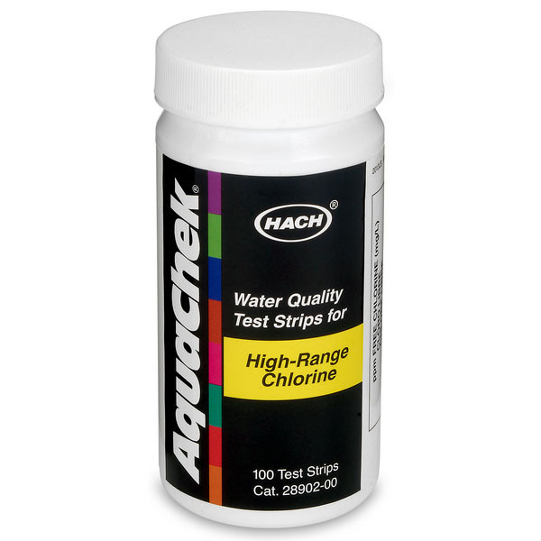 Hach test strips are manufactured with a unique reagent pad at the tip, using proven chemistries based on standard reference methods. Just dip the strip, wait until color development occurs, and compare the color of the reacted pad to the chart printed on the bottle.