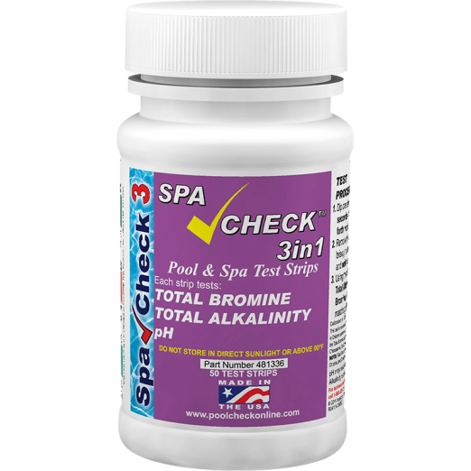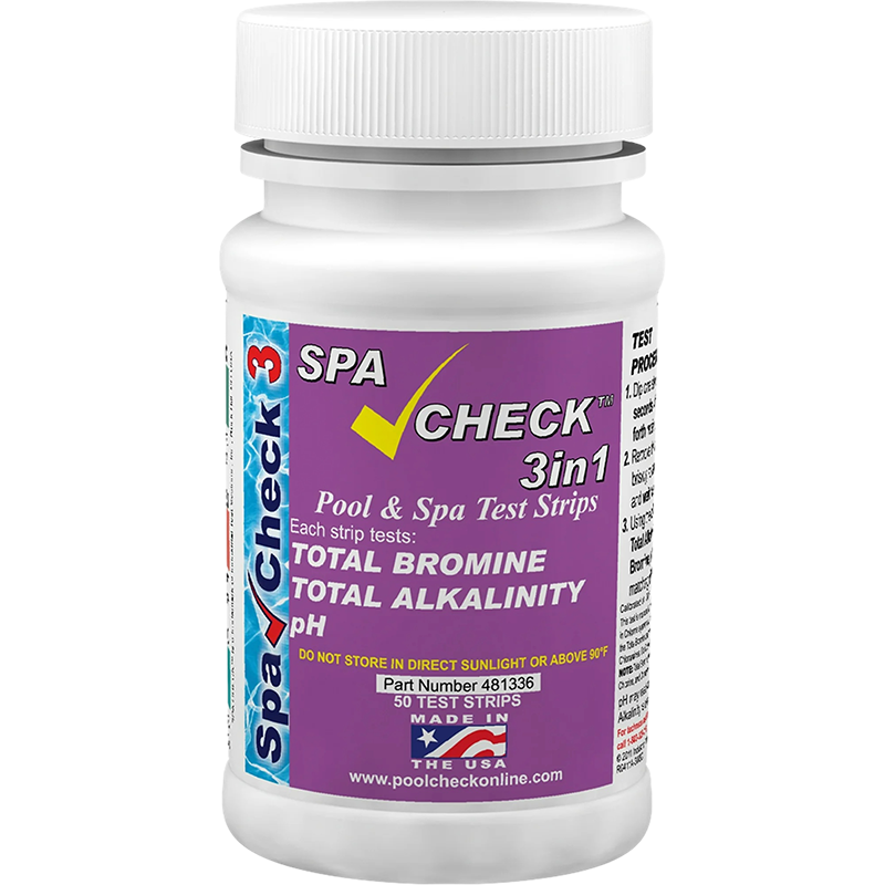 Spa Check 3 in 1 offers the user more than just another test strip; it offers accurate results that you can rely on. Spa Check 3in1 is the first test strip specifically designed for the spa owner. Giving a true total bromine reading (bromine + bromamines), Spa Check 3in1 is the only way to ensure proper chemical balance and safety.