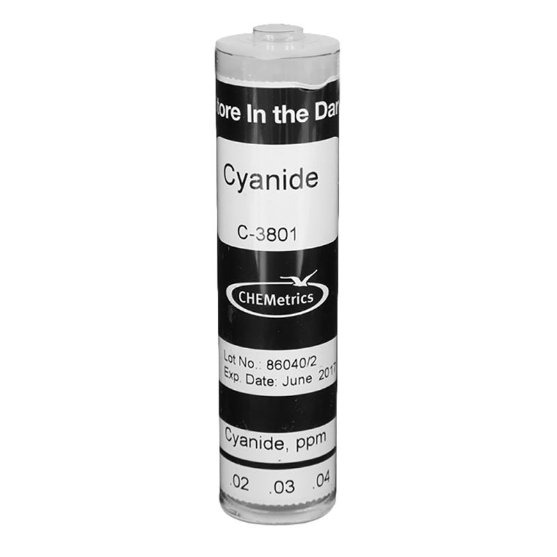 C-3801 Low Range Cyanide Comparator is a component of K-3810 Cyanide (free) CHEMets Visual Test Kit and is designed to be compared against the color formed in R-3810 Cyanide (free) CHEMets Refill. The comparator’s range is applicable for many drinking water and surface water applications. Color standards are blue in color and cover a range of 0-0.10 ppm cyanide (CN-).
