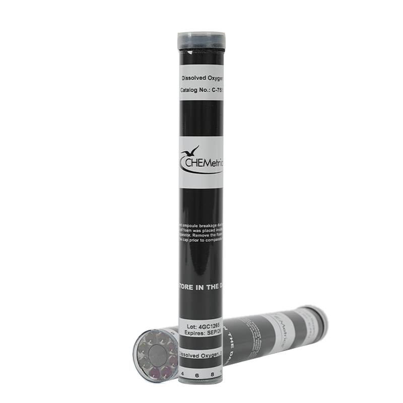C-7511 Dissolved Oxygen Comparator is a component of K-7511 Dissolved Oxygen ULR CHEMets Visual Test Kit and is designed to be compared against the color formed in R-7511 Dissolved Oxygen ULR CHEMets Refill. The C-7511 comparator's range is applicable to many industrial and boiler applications. Color standards are pink in color and cover a range of 0-20 ppb Oxygen.