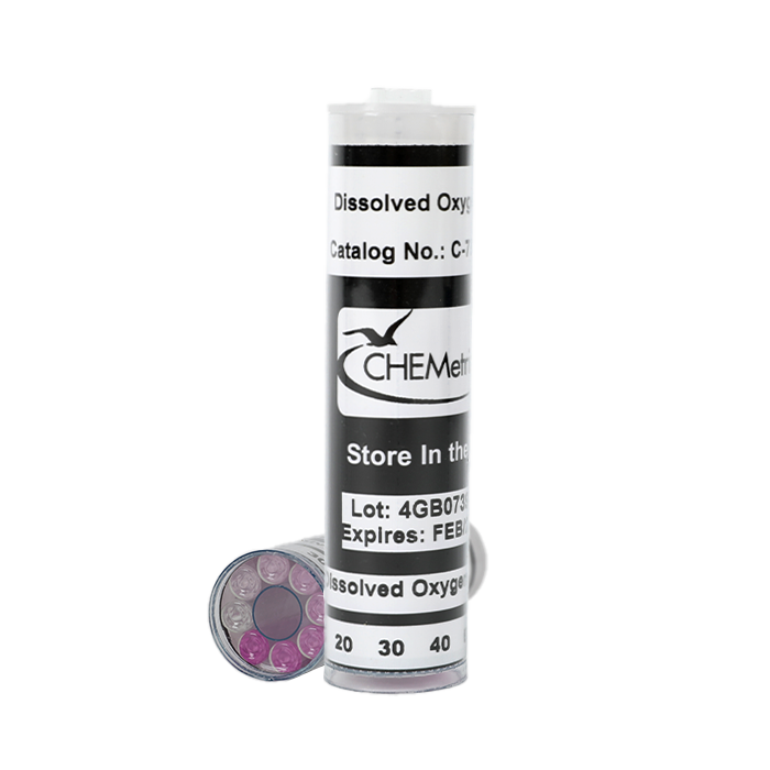C-7599 Dissolved Oxygen Comparator is a component of K-7599 Dissolved Oxygen CHEMets Visual Test Kit and is designed to be compared against the color formed in R-7540 Dissolved Oxygen CHEMets Refill. The comparator’s range is applicable to many industrial applications. Color standards are pink in color and cover a range of 0-100 ppb Oxygen.