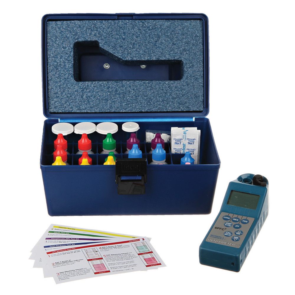 This cooling water test kit gives you nine test parameters into one, easy-to-use combination test kit. Also included is the Myron L 6PII multi-parameter meter. This meter is simple to use and can help streamline your testing process. The Cooling Water Test Kit 200 is packaged in a durable plastic case with handle for easy transport. The kit includes all necessary reagents and EndPoint ID test instructions for monitoring: