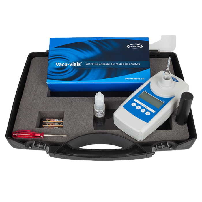 SAM (Single-Analyte Photometer) SAM Kit comes in a plastic case and contains everything needed to perform 30 tests: Vacu-vials Kit, SAM Photometer, 4 AAA batteries, screwdriver, and instructions. Ozone is a common disinfectant used in wastewater, drinking water, water bottling, and other food and beverage packaging applications.